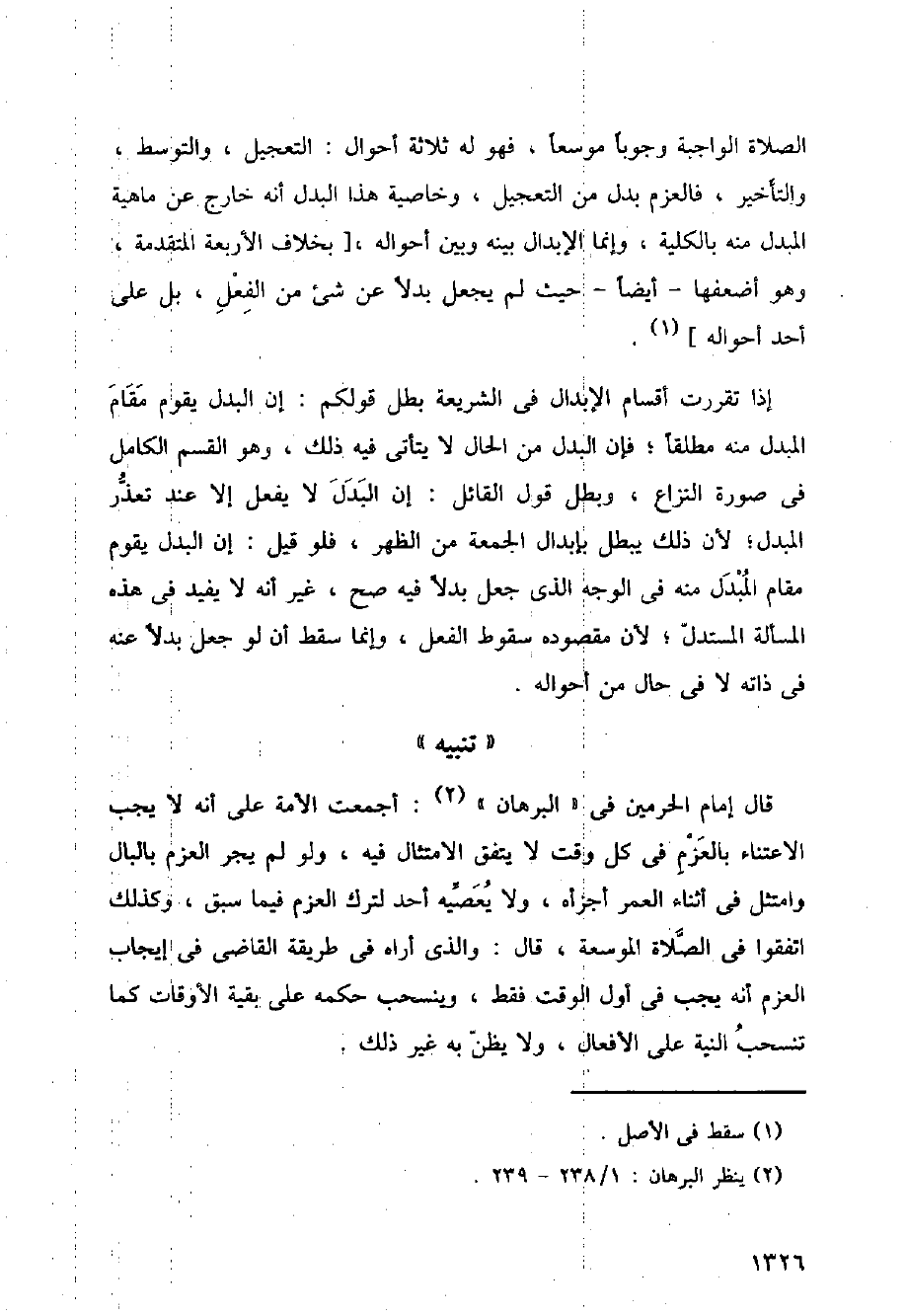 قال إمام الحرمين في (البرهان): أجمعت الأمة على أنه لا يجب الاعتناء بالعزم في كل وقت لا يتفق الامتثال فيه، ولو لم يجر العزم بالبال وامتثل في أثناء العمر أجزأه، ولا يعصيه أحد لترك العزم فيما سبق، وكذلك اتفقوا في الصلاة الموسعة، قال والذي أراه في طريقة القاضي في إيجاب العزم أنه يجب في أول الوقت فقط، وينسحب حكمه على بقية الأوقات كما تنسحب النية على الأفعال، ولا يظن به غير ذلك.
