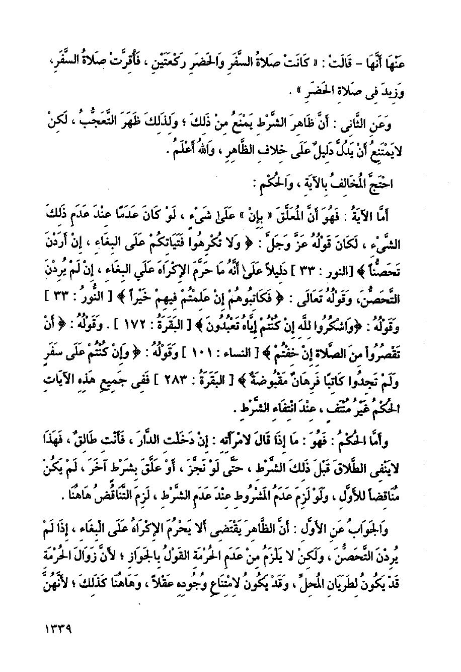والجواب عن الأول: أن الظاهر يقتضي ألا يحرم الإكراه على البغاء إذا لم يردن التحصن ولكن لا يلزم من عدم الحرمة القول بالجواز؛ بأن زوال الحرمة قد يكون لطريان المحل، وقد يكون لامتناع وجود عقلا وهاهنا كذلك لأنهن