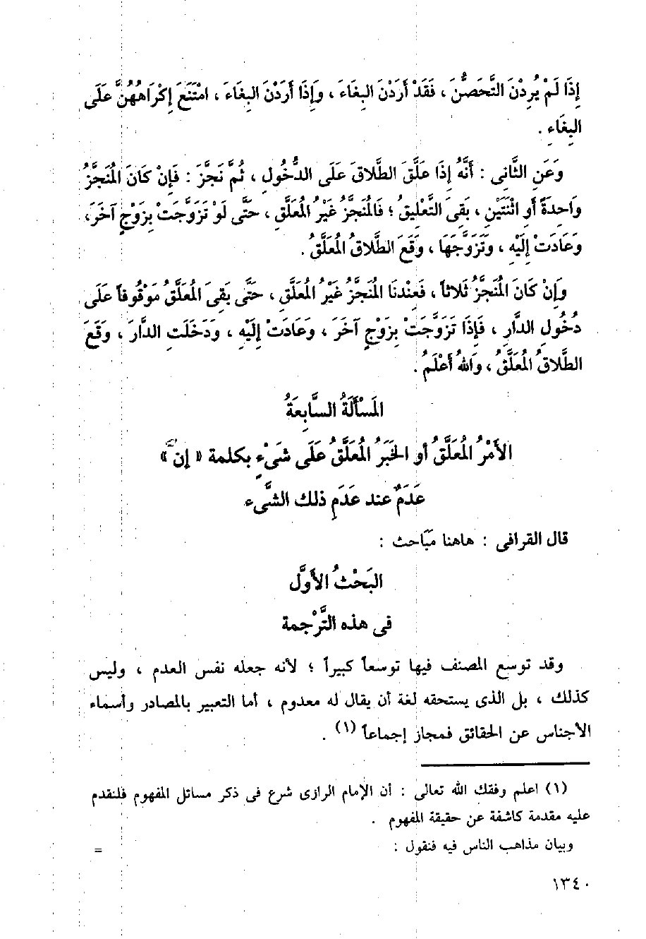 قال القرافي: هاهنا مباحث: