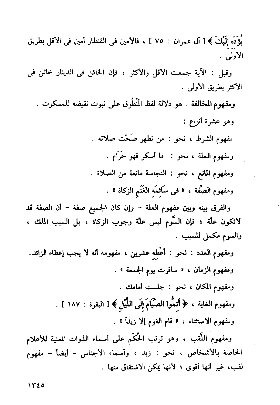 ومفهوم اللقب، وهو ترتب الحكم على أسماء الذوات المعنية للأعلام الخاصة بالأشخاص، نحو: زيد، وأسماء الأجناس أيضا مفهوم لقب، غير أنها أقوى، لأنها يمكن الاشتقاق منها.