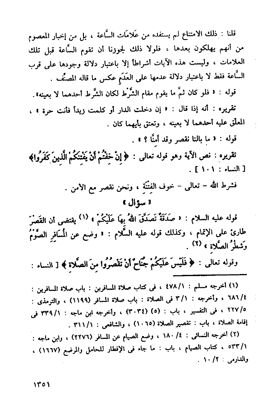تقريره: نص الآية وهو قوله تعالى: (إن خفتم أن يفتنكم الذين كفروا) [النساء:101].