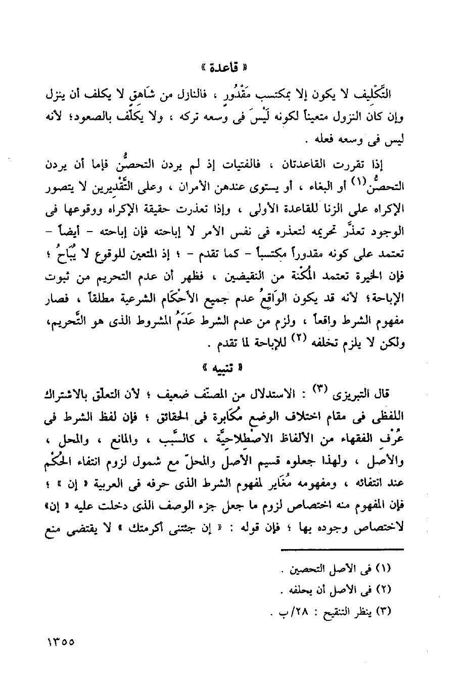قال التبريزي: الاستدلال من المصنف ضعيف؛ لأن التعلق بالإشراق اللفظي في مقام اختلاف الوضع مكابرة في الحقائق؛ فإن اللفظ الشرط في عرف الفقهاء من الألفاظ الاصطلاحية، كالكسب، والمانع، والمحل، والأصل، ولهذا جعلوه قسيم الأصل والمحل مع شمول لزوم انتفاء الحكم عند انتفائه ومفهومه مغاير لمفهوم الشرط الذي حرفه في العربية (إن) ك فإن المفهوم منه اختصاص لزوم ما جعل جزء الوصف الذي دخلت عليه (إنا) لاختصاص وجود بها، فإن قوله: (إن جئتني أكرمتك) لا يقتضي منع