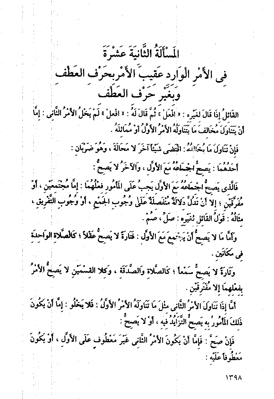 في الأمر الوارد عقيب الأمر بحرف العطف وبغير حرف العطف