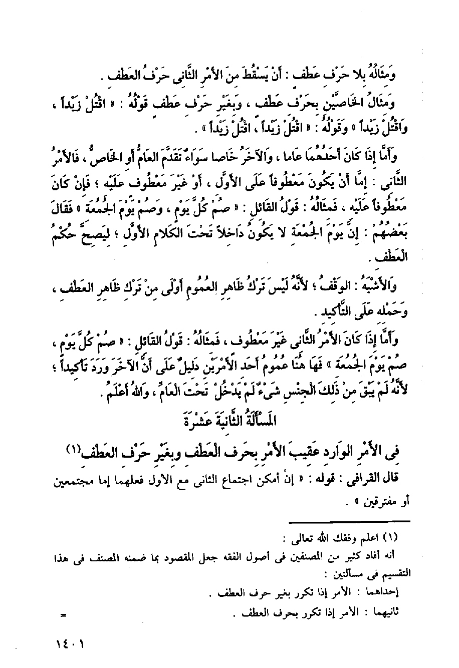 في الأمر الوارد عقيب الأمر بحرف العطف وبغير حرف العطف.