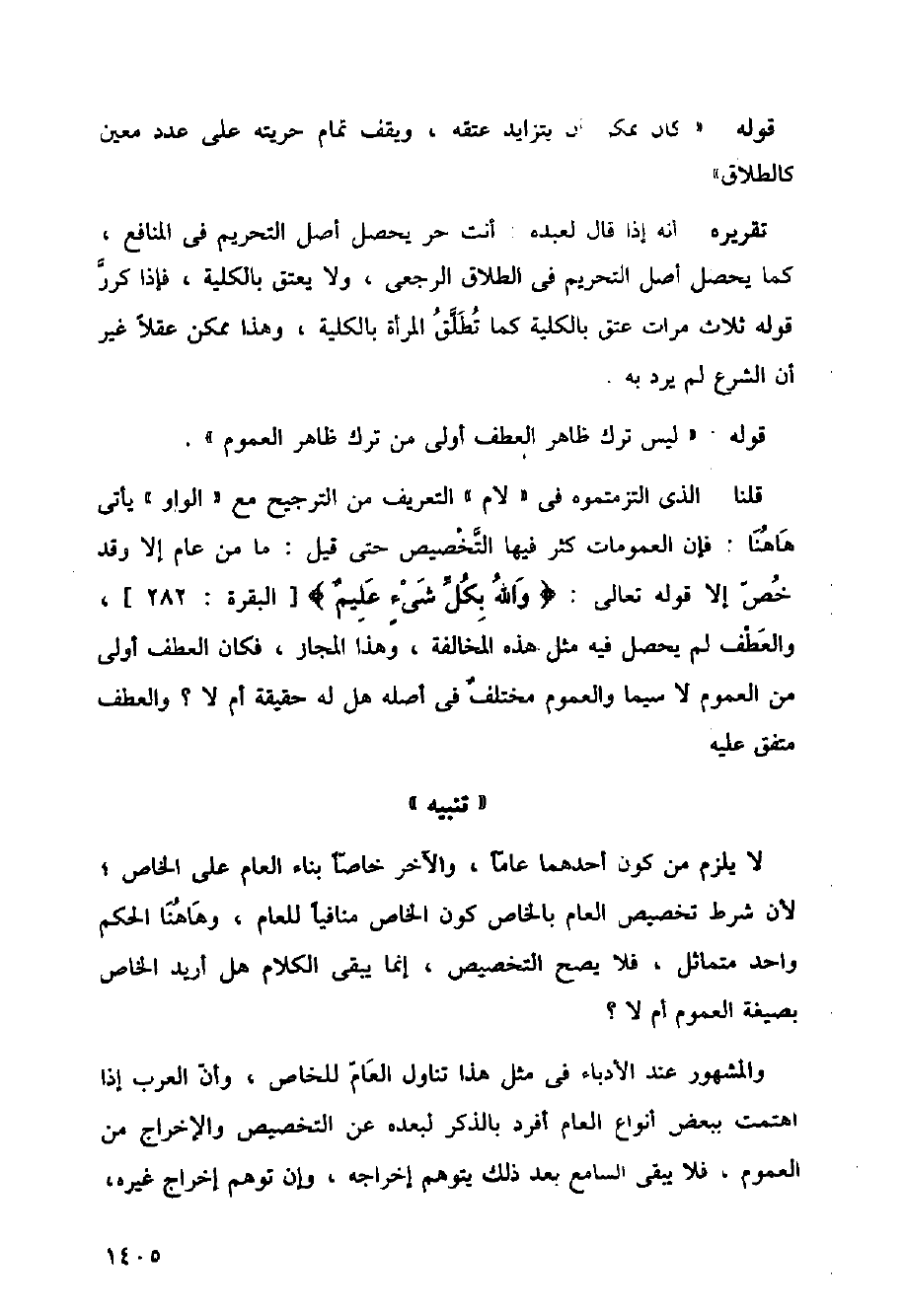 قلنا: الذي التزمتموه في (لام) التعريف من الترجيح مع (الواو) يأتي هاهنا: فإن العموميات كثر فيها التخصيص حتى قيل: ما من عام إلا وقد خص إلا قوله تعالى: (والله بكل شيء عليم) [البقرة:282] والعطف لم يحصل فيه مثل هذه المخالفة، وهذا المجاز، فكان العطف أولى من العموم لا سيما والعموم مختلف في أصله هل له حقيقة أم لا؟ والعطف متفق عليه.