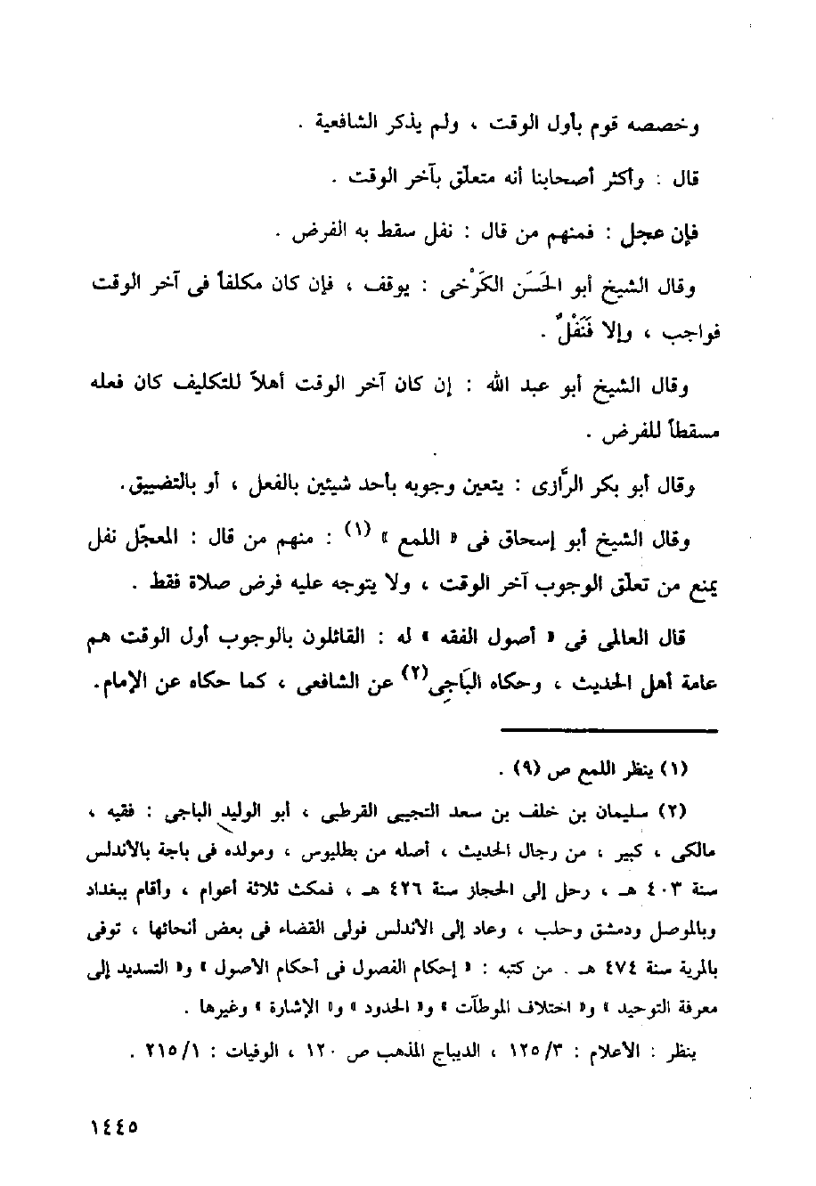 قال العالمي في (أصول الفقه): القائلون بالوجوب أول الوقت هم عامة أهل الحديث، وحكاه الباجي عن الشافعي، كما حكاه عن الإمام.