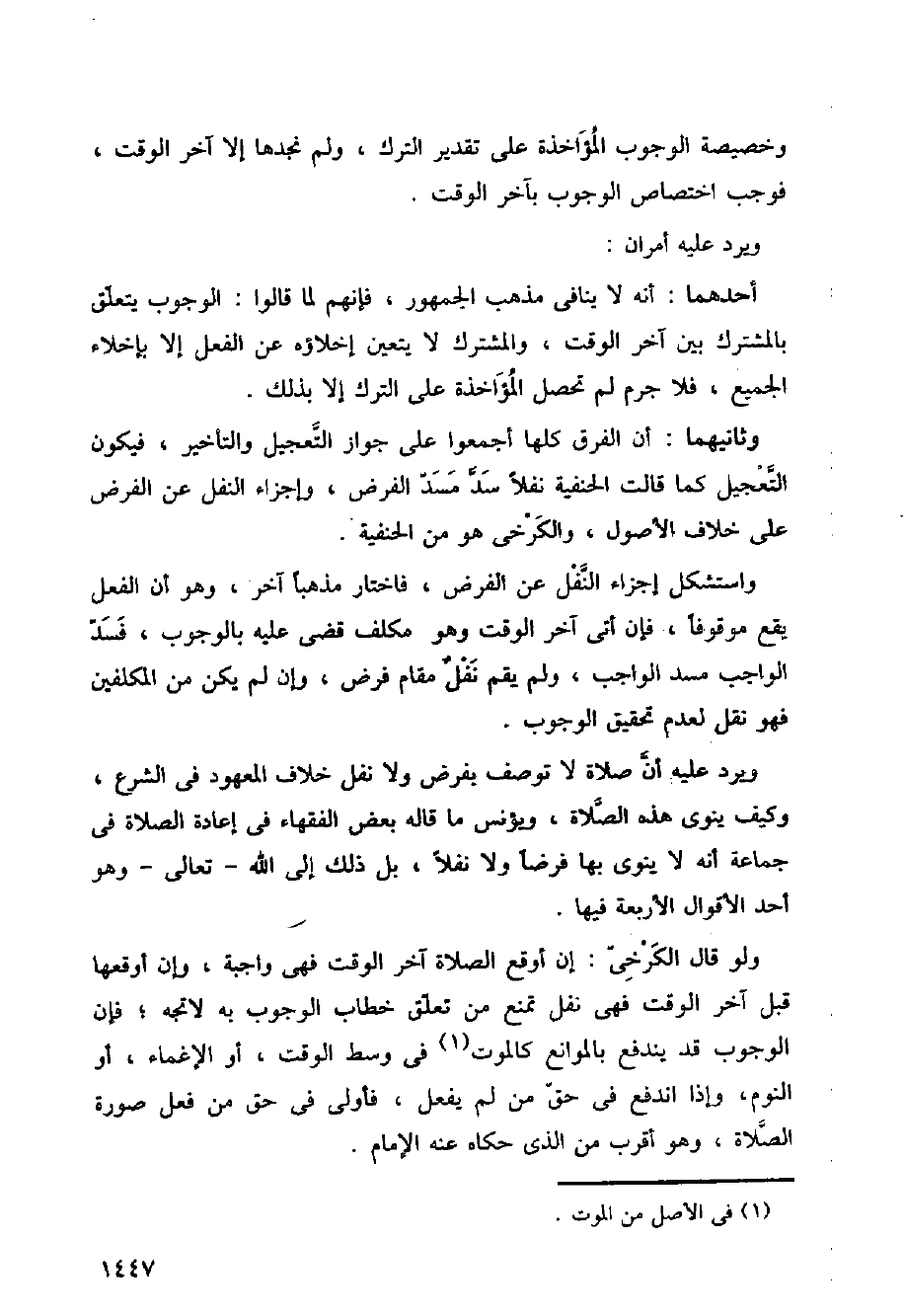 وثانيهما: أن الفرق كلها أجمعواعلى جواز التعجيل والتأخير، فيكون التعجيل كما قالت الحنفية نفلا سد مسد الفرض، وإجزاء النفل عن الفرض على خلاف الأصول، والكرخي هو من الحنفية.