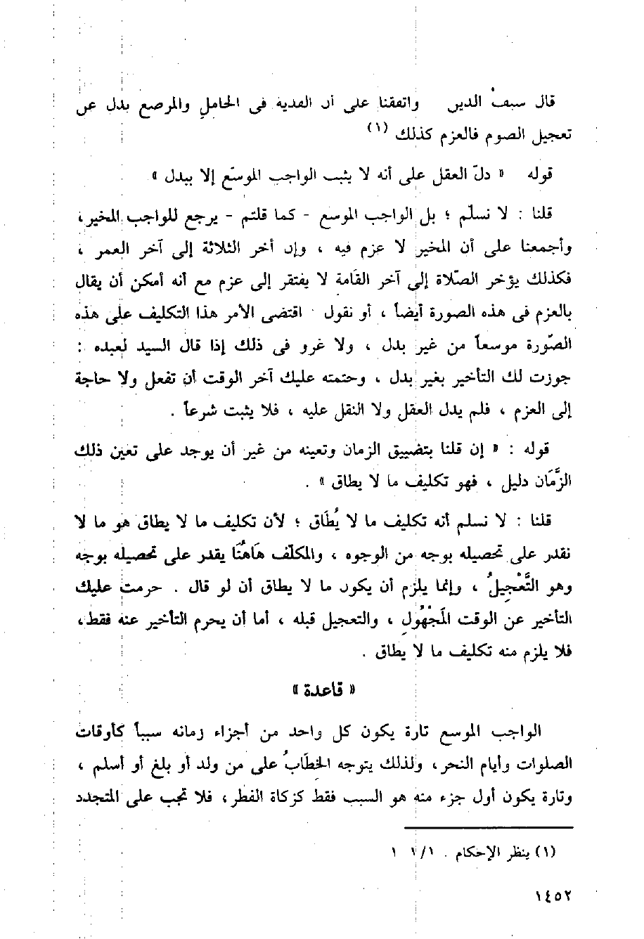 قلنا: لا نسلم أنه تكليف ما لا يطاق؛ لأن تكليف ما لا يطاق هو ما لا نقدر على تحصيله بوجه من الوجوه، والمكلف هاهنا يقدر على تحصيله بوجه وهو التعجيل، وإنما يلزم أن يكون ما لا يطاق أن لو قال: حرمت عليك التأخير عن الوقت المجهول، والتعجيل قبله، أما أن يحرم التأخير عنه فقط، فلا يلزم منه تكليف ما لا يطاق.
