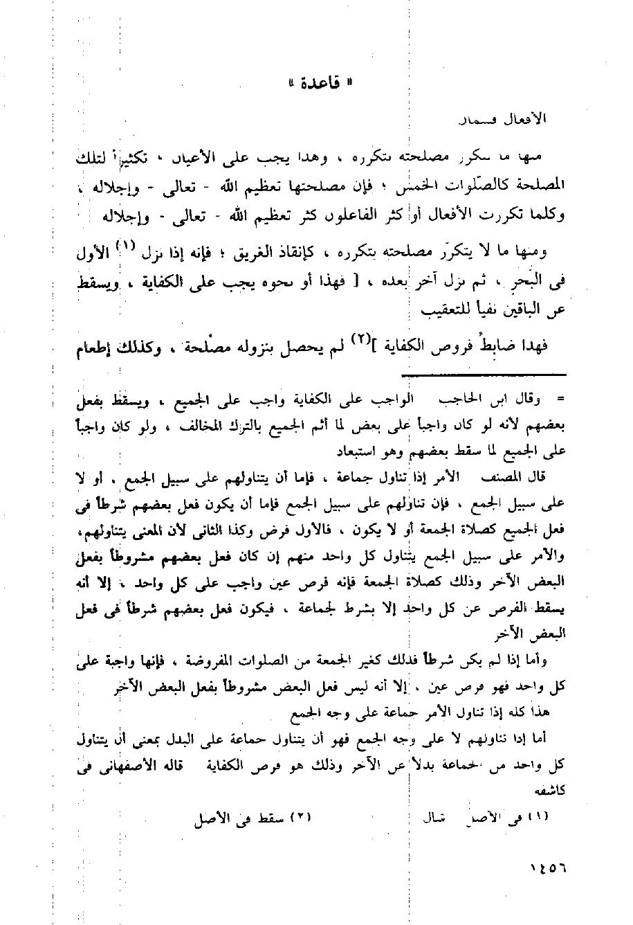 ومنها ما لا يتكرر مصلحته بتكرره، كإنقاذ الغريق؛ فإنه إذا انزل الأول في البحر، ثم نزل آخر بعده. [فهذا أو نحوه يحب على الكفاية، ويسقط عن الباقين نفيا للتعقيب.