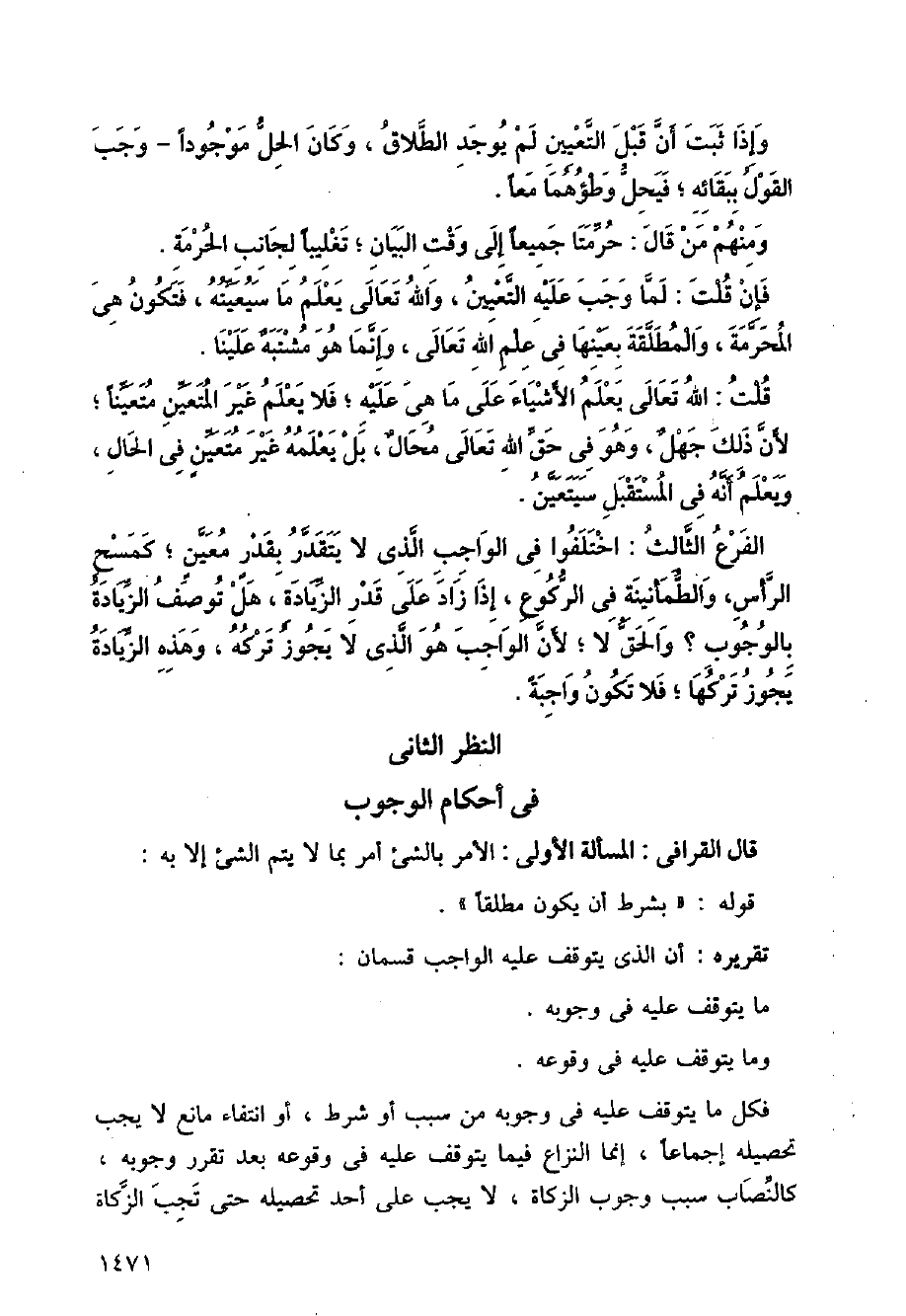 قال القرافي: المسألة الأولى: الأمر بالشيء أمر بما لا يتم الشيء إلا به: