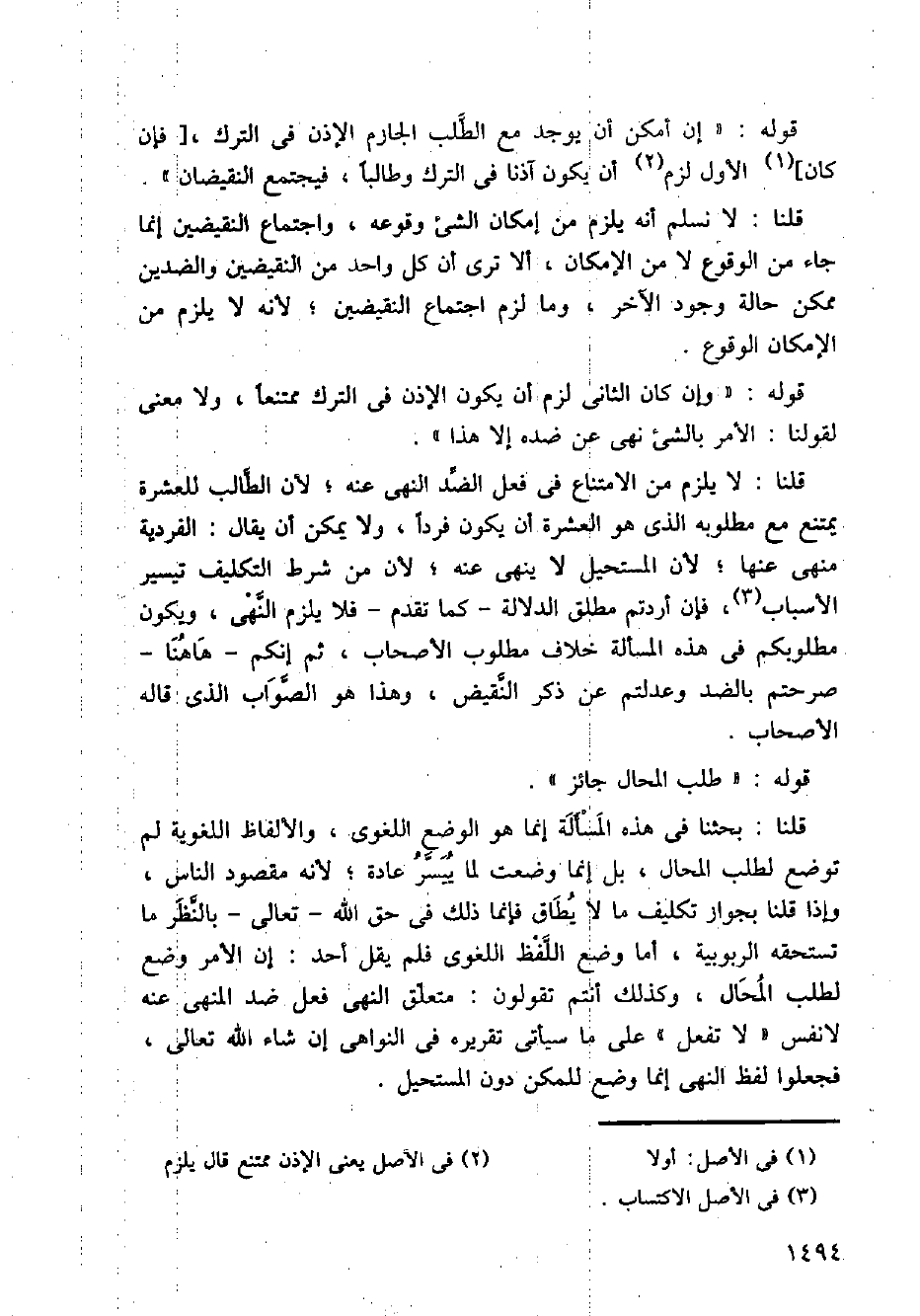 قوله: "إن أمكن أن يوجد مع الطلب الجازم الإذن في الترك، فإن كان الأول لزم أن يكون آذناً في الترك وطالبا ً، فيجتمع النقيضان".