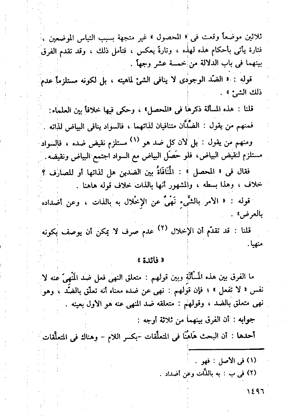 ثلاثين موضعا وقعت في (المحصول) غير متجهة بسبب إلتباس الموضعين، فتاره يأتي باحكام هذه لهذه، وتارة يعكس، فتأمل ذلك، وقد تقدم الفرق بينهما في باب الدلالة من خمسة عشر وجهاً.