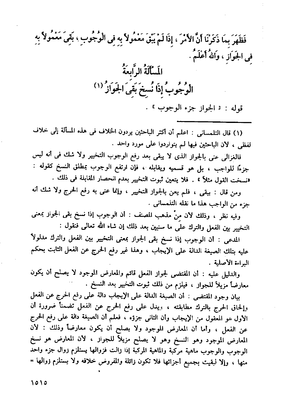 فظهر بما ذكرنا أن الأمر، إذا لم يبق معمولا به في الوجوب؛ بقى معمولا به في الجواز، والله أعلم.