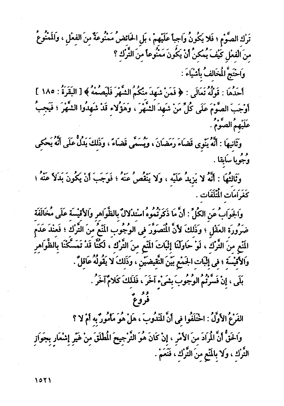 ترك الصوم؛ فلا يكون واجبا عليهم، بل الحائض ممنوعة من الفعل، والممنوع من الفعل كيف يمكن أن يكون ممنوعا من الترك؟