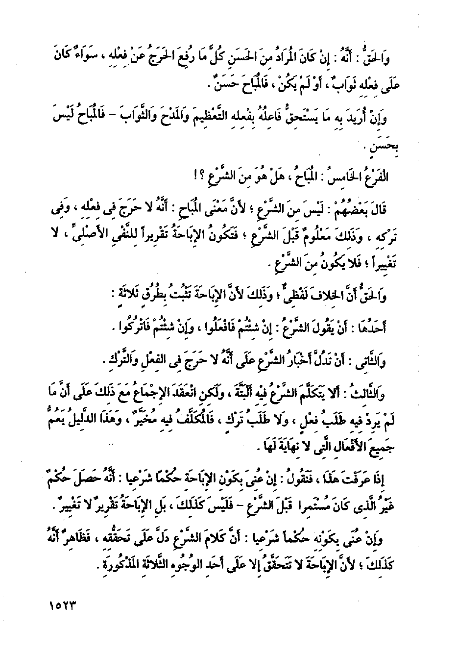 الفرع الخامس: المباح، هل هو من الشرع؟!