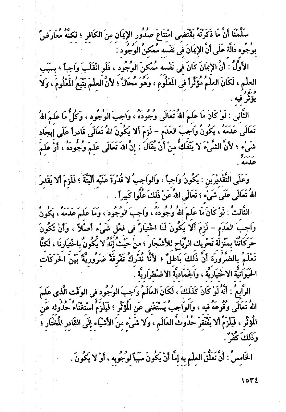 الأول: ان الإيمان كان في نفسه ممكن الوجود، فلو انقلب واجبا؛ بسبب العلم، لكان العلم مؤثرا في المعلوم، وهو محال؛ لان العلم يتبع المعلوم، ولا يؤثر فيه.
