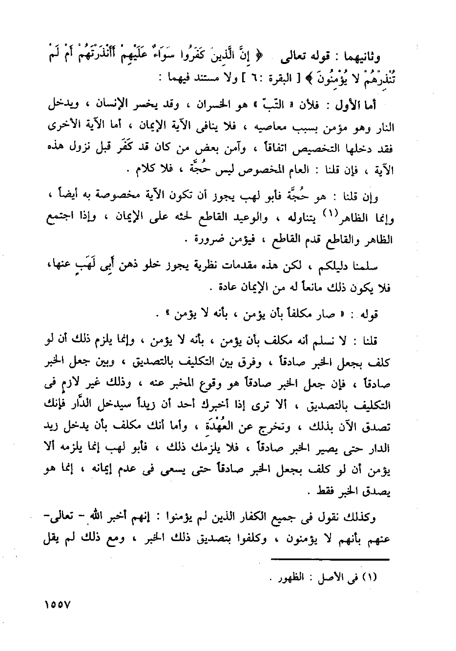 سلمنا دليلكم، لكن هذه مقدمات نظرية يجوز خلو ذهن أبي لهب عنها، فلا يكون ذلك مانعاً له من الإيمان عادة.