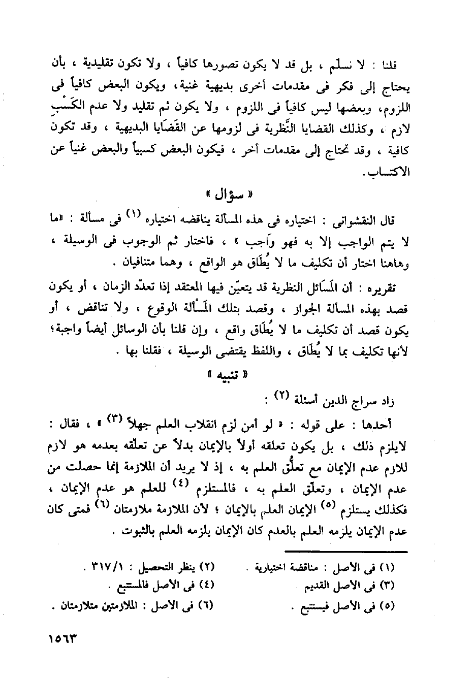 قال النقشواني: اختياره في هذه المسألة يناقضه اختياره في مسألة: " ما لا يتم الواجب إلا به فهو واجب "، فاختار ثم الوجوب في الوسيلة، وهاهنا اختار أن تكليف ما لا يطاق هو الواقع، وهما متنافيان.