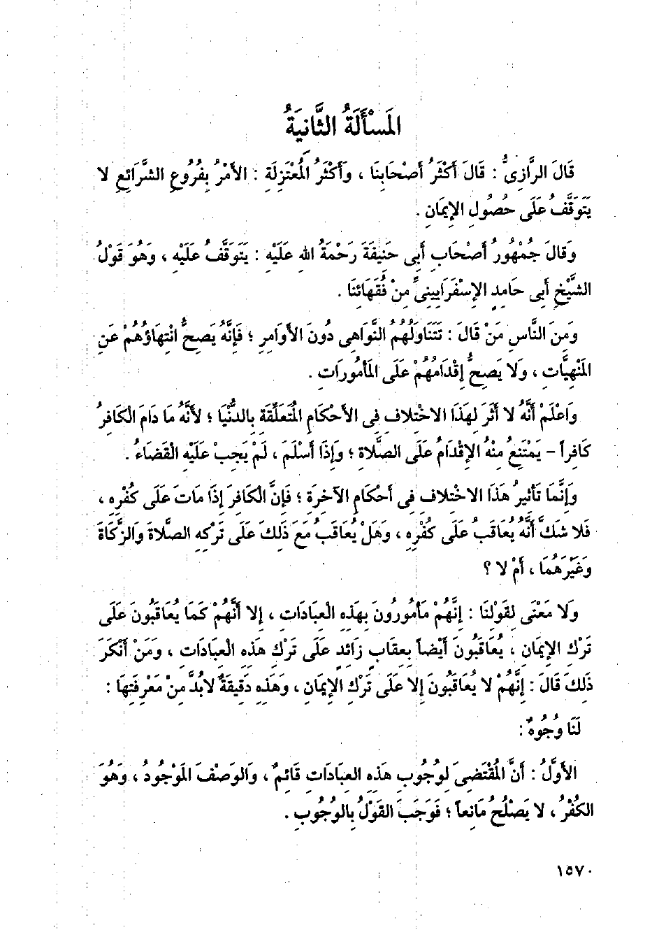 قال الرازي: قال أكثر أصحابنا، وأكثر المعتزلة: الأمر بفروع الشرائع لا يتوقف على حصول الإيمان.