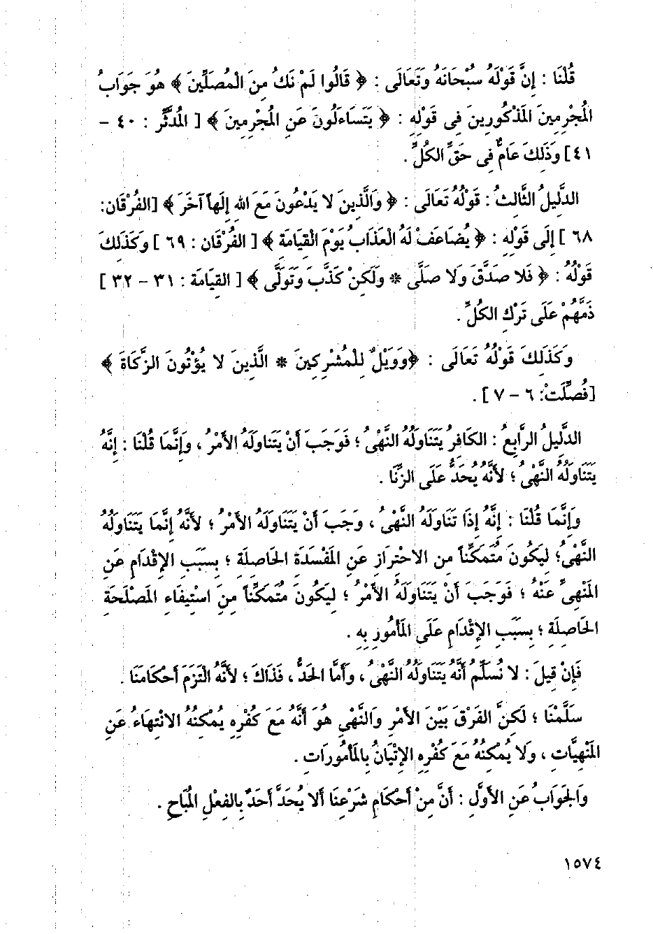 الدليل الرابع: الكافر يتناوله النهي؛ فوجب أن يتناوله الأمر، وإنما قلنا: إنه يتناوله النهي؛ لأنه يحد على الزنا.