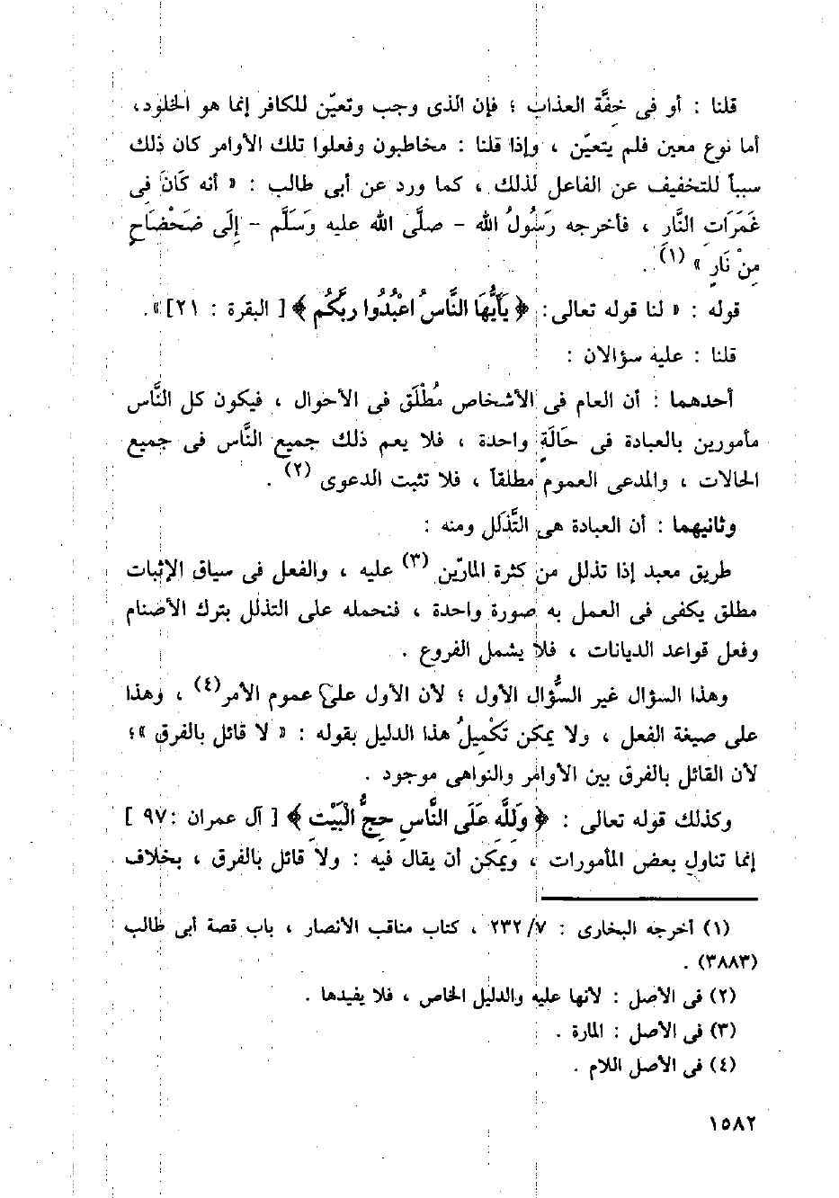 قوله: " لنا قوله تعالى: {يأيها الناس اعبدوا ربكم} [البقرة: 21] ".