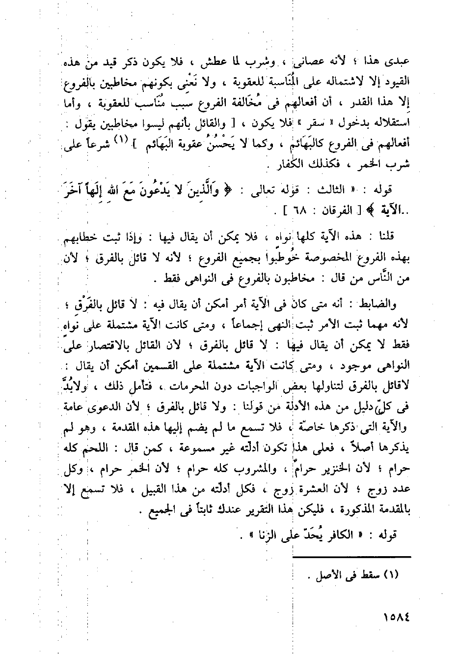قلنا: هذه الآية كلها نواه، فلا يمكن أن يقال فيها: وإذا ثبت خطابهم بهذه الفروع المخصوصة خوطبوا بجميع الفروع؛ لأنه لا قائل بالفرق؛ لأن من الناس من قال: مخاطبون بالفروع في النواهي فقط.