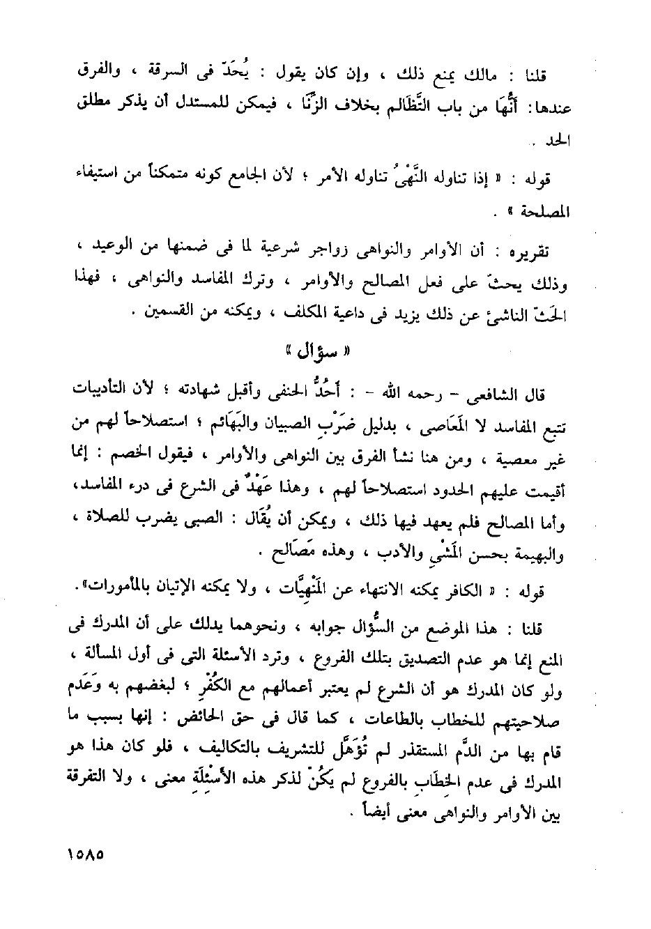 قال الشافعي رحمه الله: أحد الحنفي وأقبل شهادته؛ لأن التأديبات تتبع المفاسد لا المعاصي، بدليل ضرب الصبيان والبهائم؛ استصلاحا لهم من غير معصية، ومن هنا نشأ الفرق بين النواهي والأوامر، فيقول الخصم: إنما أقيمت عليهم الحدود استصلاحا لهم، وهذا عهد في الشرع في درء المفاسد، وأما المصالح فلم يعهد فيها ذلك، ويمكن أن يقال: الصبي يضرب للصلاة، والبهيمة بحسن المشي والأدب، وهذه مصالح.