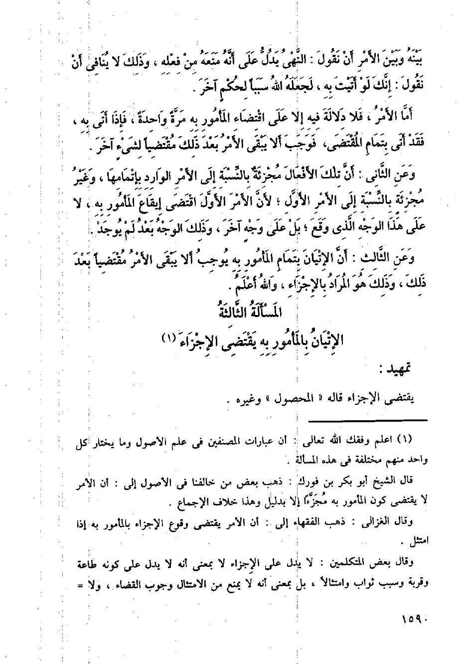 وعن الثاني: أن تلك الأفعال مجزئة بالنسبة إلى الأمر الوارد بإتمامها، وغير مجزئة بالنسبة إلى الأمر الأول؛ لأن الأمر الأول اقتضى إيقاع المأمور به، لا على هذا الوجه الذي وقع؛ بل على وجه آخر، وذلك الوجه بعد لم يوجد.