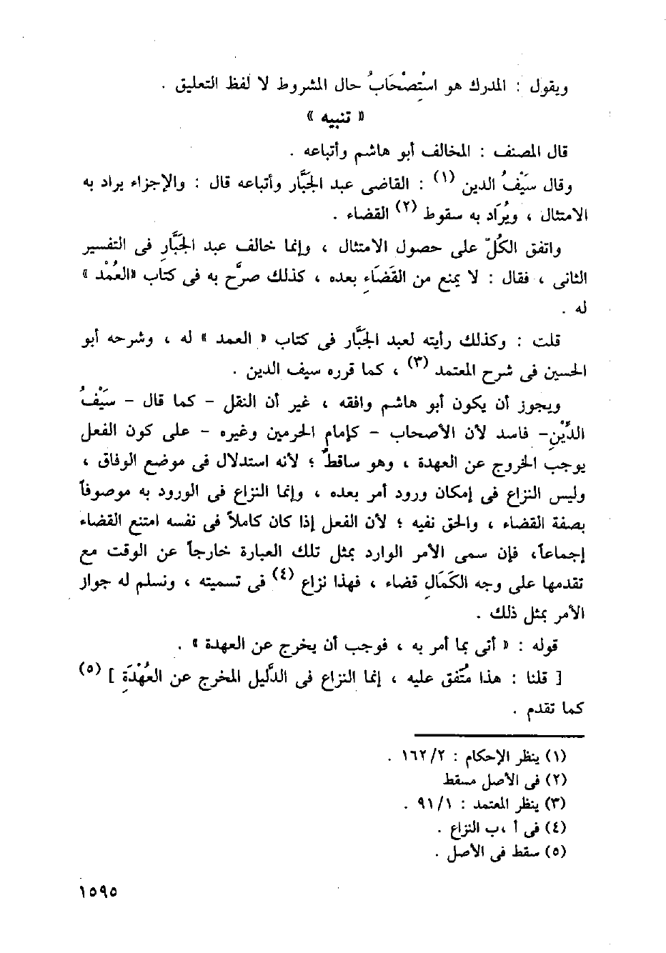قلت: وكذلك رأيته لعبد الجبار في كتاب (العمد) له، وشرحه أبو الحسين في شرح المعتمد، كما قرره سيف الدين.