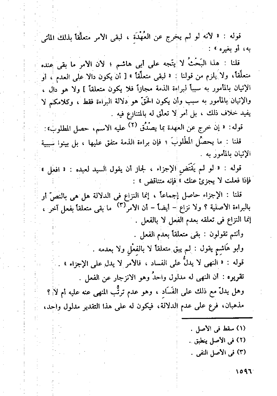 قلنا: الإجزاء حاصل إجماعا، إنما النزاع في الدلالة هل هي بالنص أو بالبراءة الأصلية؟ ولا نزاع -أيضا - أن الأمر ما بقي متعلقا بفعل آخر، إنما النزاع في تعلقه بعدم الفعل لا بالفعل.