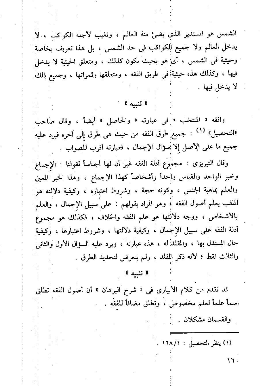 الشمس هو المستدير الذي يضئ منه العالم، وتغيب لأجله الكواكب، لا يدخل العالم ولا جميع الكواكب في حد الشمس، بل هذا تعريف بخاصة وحيثية في الشمس، أى هو بحيث يكون كذلك، ومتعلق الحيثية لا يدخل فيها، وكذلك هذه حيثيثة في طريق الفقه، ومتعلقها وثمراتها، وجيمع ذلك لا يدخل فيها.