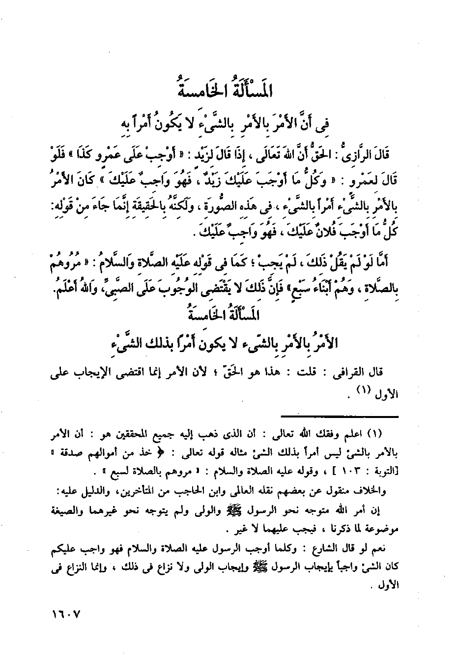 قال القرافي: قلت: هذا هو الحق؛ لأن الأمر إنما اقتضى الإيجاب على الأول