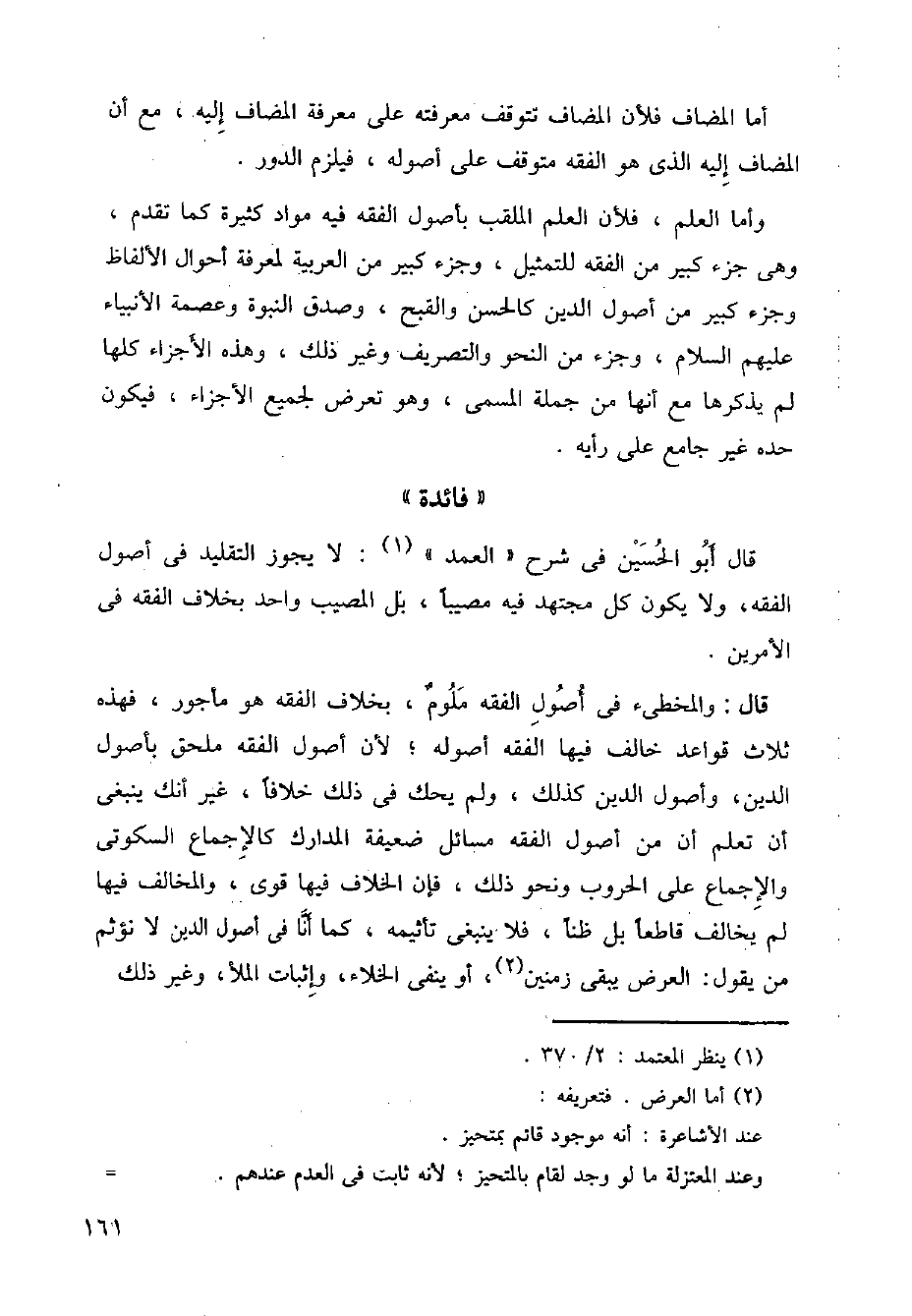 وأما العلم، فلأن العلم الملقب بأصول الفقه فيه مواد كثيرة كما تقدم، وهي جزء كبير من الفقه للتمثيل، وجزء كبير من العربية لمعرفي أحوال الألفاظ وجزء كبير من أصلول الدين كالحسن والقبح، وصدق النبوة وعصمة الانبياء عليه السلام، وجزء من النحو والتصريف وغير ذلك، وهذه الإجزاء كلها لم يذكرها مع أنها من جملة المسمى، وهو تعرض لجميع الأجزاء، فيكون حده غير جامع على رأيه.