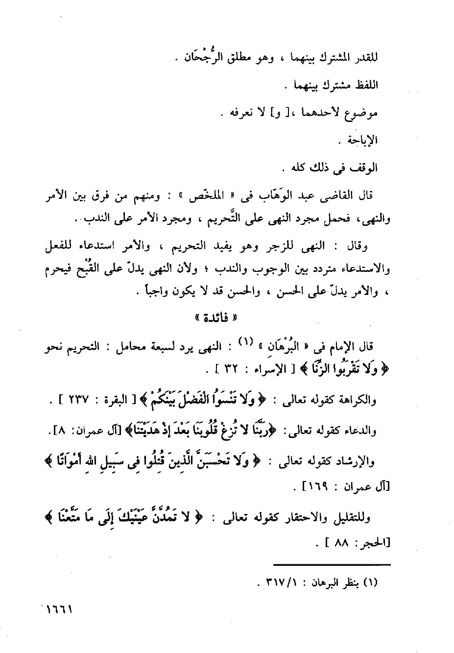 قال الإمام في (البرهان): النهي يرد لسبعة محامل: التحريم نحو {ولا تقربوا الزنا} [الإسراء: 32].