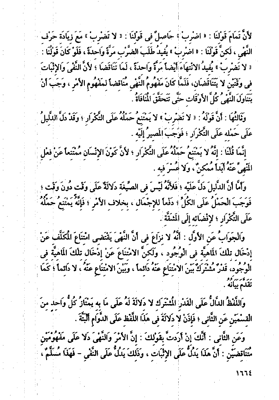 والجواب عن الأول: أنه لا نزاع في أن النهي يقتضي امتناع المكلف عن إدخال تلك الماهية في الوجود، ولكن الامتناع عن إدخال تلك الماهية في الوجود، قدر مشترك بين الامتناع عنه دائما، وبين الامتناع عنه، لا دائما؛ كما تقدم بيانه.