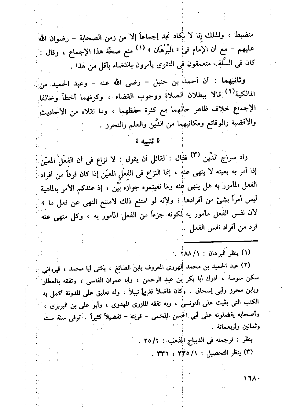 منضبط، ولذلك إنا لا نكاد نجد إجماعا إلا من زمن الصحابة رضوان الله عليهم مع أن الإمام في (البرهان) منع صحة هذا الإجماع، وقال: كان في السلف متعمقون في التقوى يأمرون بالقضاء بأقل من هذا.