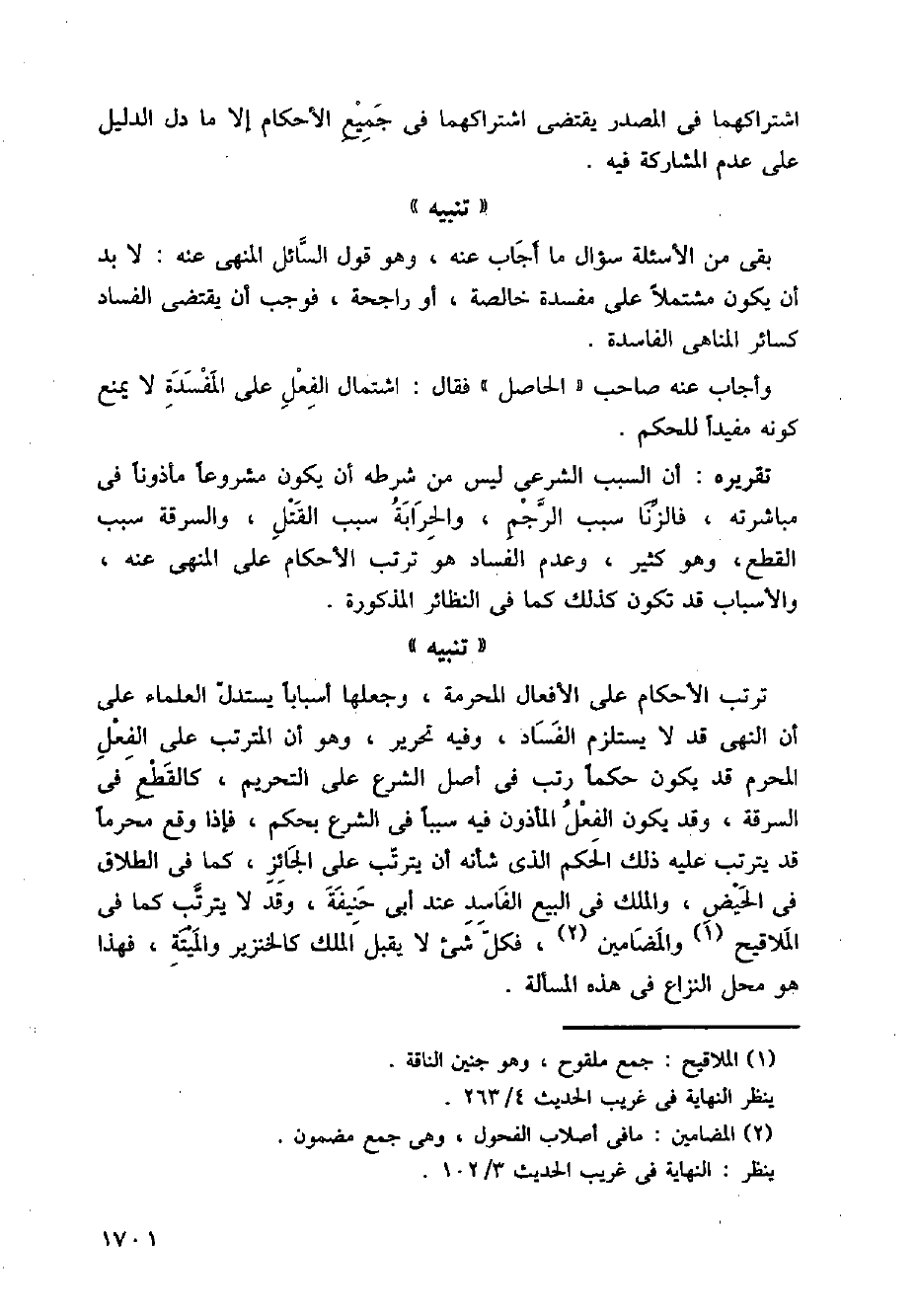 ترتب الأحكام على الأفعال المحرمة، وجعلها أسبابا يستدل العلماء على أن النهي قد لا يستلزم الفساد، وفيه تحرير، وهو أن المترتب على الفعل المحرم قد يكون حكما رتب في أصل الشرع على التحريم، كالقطع في السرقة، وقد يكون الفعل المأذون فيه سببا في الشرع بحكم، فإذا وقع محرما قد يترتب عليه ذلك الحكم الذي شأنه أن يترتب على الجائز، كما في الطلاق في الحيض، والملك في البيع الفاسد عند أبي حنيفة، وقد لا يترتب كما في الملاقيح والمضامين، فكل شيء لا يقبل الملك كالخنزير والميتة، فهذا هو محل النزاع في هذه المسألة.