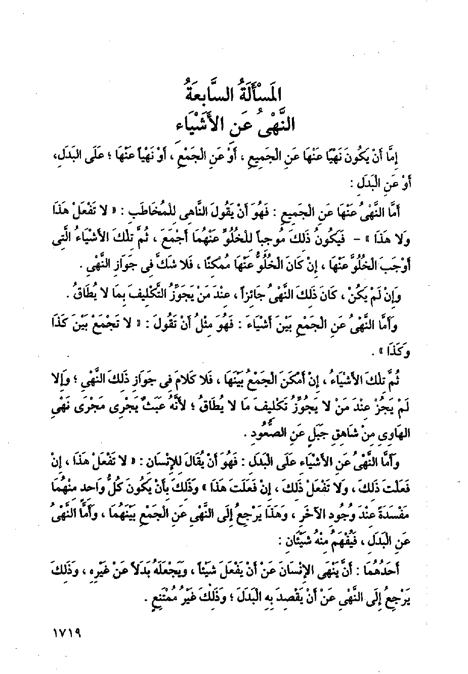 أما النهي عنها عن الجميع: فهو أن يقول الناهي للمخاطب: " لا تفعل هذا ولا هذا " - فيكون ذلك موجبا للخلو عنهما أجمع، ثم تلك الأشياء التي أوجب الخلو عنها، إن كان الخلو عنها ممكنا، فلا شك في جواز النهي.