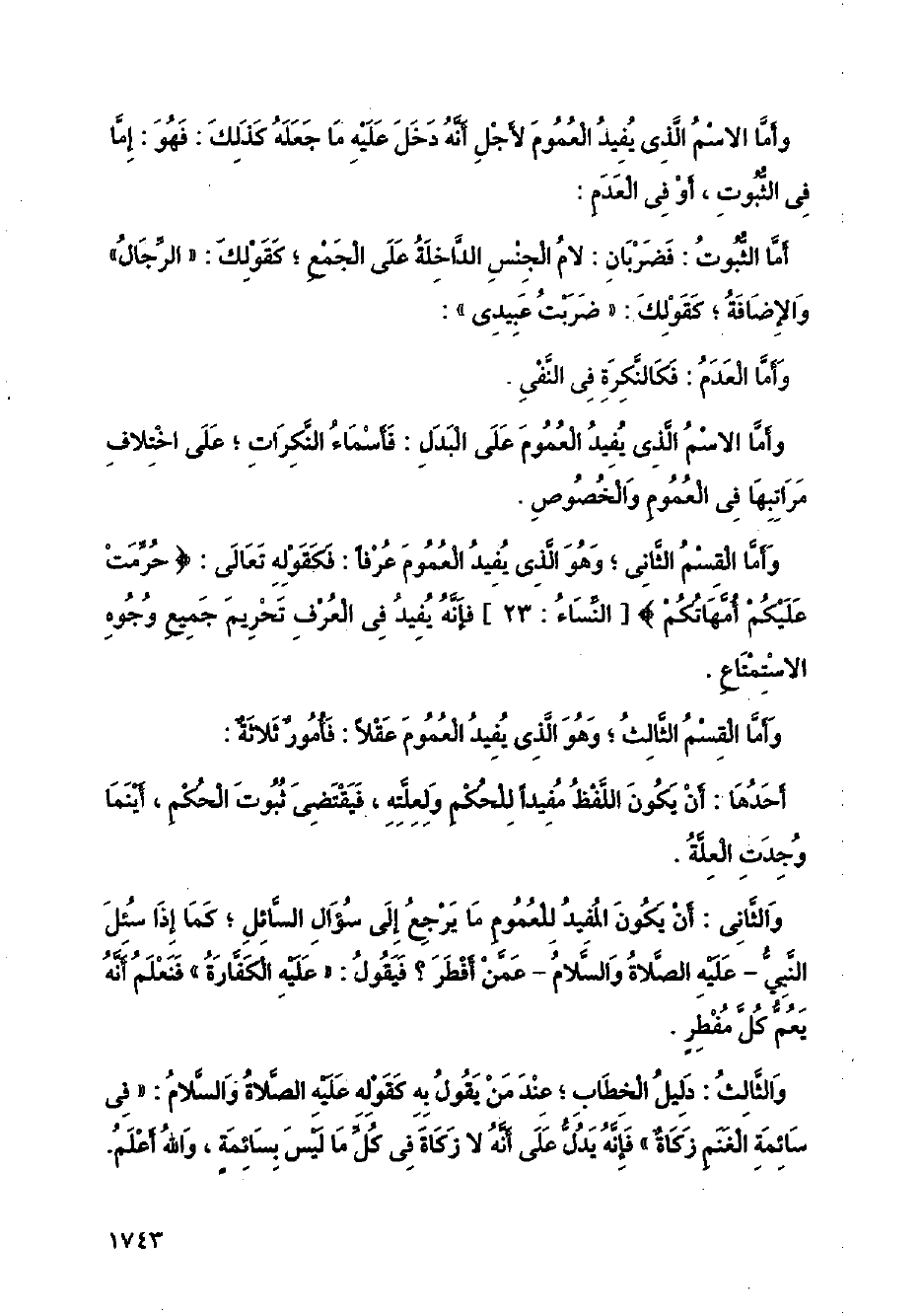 وأما القسم الثالث؛ وهو الذي يفيد العموم عقلا: فأمور ثلاثة: