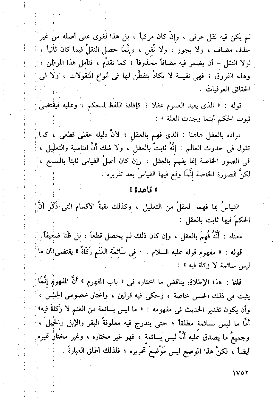 قلنا: هذا الاطلاق يناقض ما اختاره في (باب المفهوم) ان المفهوم إنما يثبت في ذلك الجنس خاصة، وحكى فيه قولين، واختار خصوص الجنس، وان يكون تقدير الحديث في مفهومه: " ما ليس بسائمة من الغنم لا زكاه فيه " أما ما ليس بسائمة مطلقا؛ حتى يندرج فيه معلوفة البقر والابل والخيل، وجميع ما يصدق عليه أنه ليس بسائمة، فهو غير مختاره، وغير مختار غيره أيضا، لكن هذا الموضع ليس موضع تحريره؛ فلذلك أطلق العبارة.
