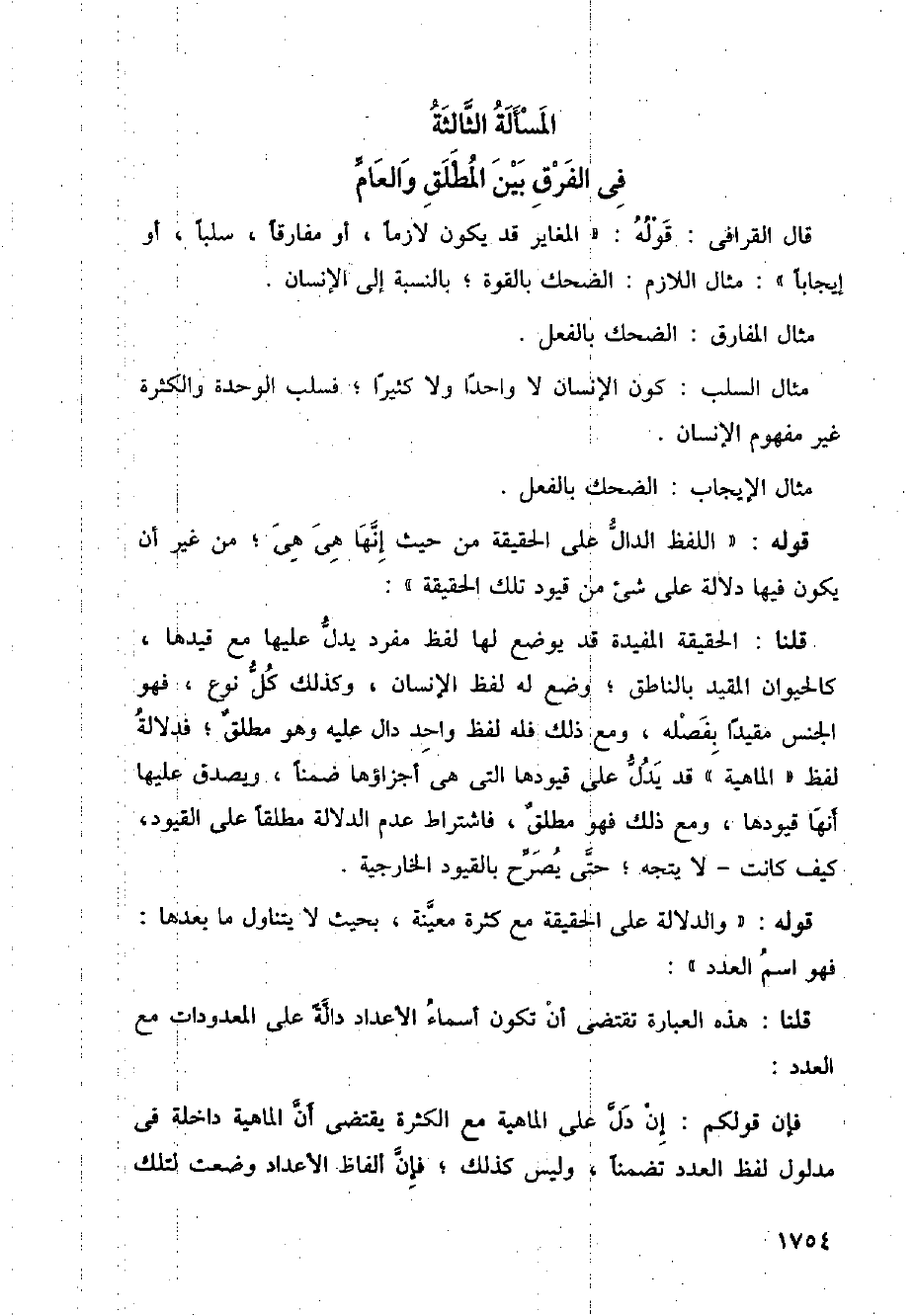 قال القرافي: قوله: " المغاير قد يكون لازما، أو مفارقا، سلبا، او إيجابا ": مثال اللازم: الضحك بالقوة؛ بالنسبة إلى الإنسان.