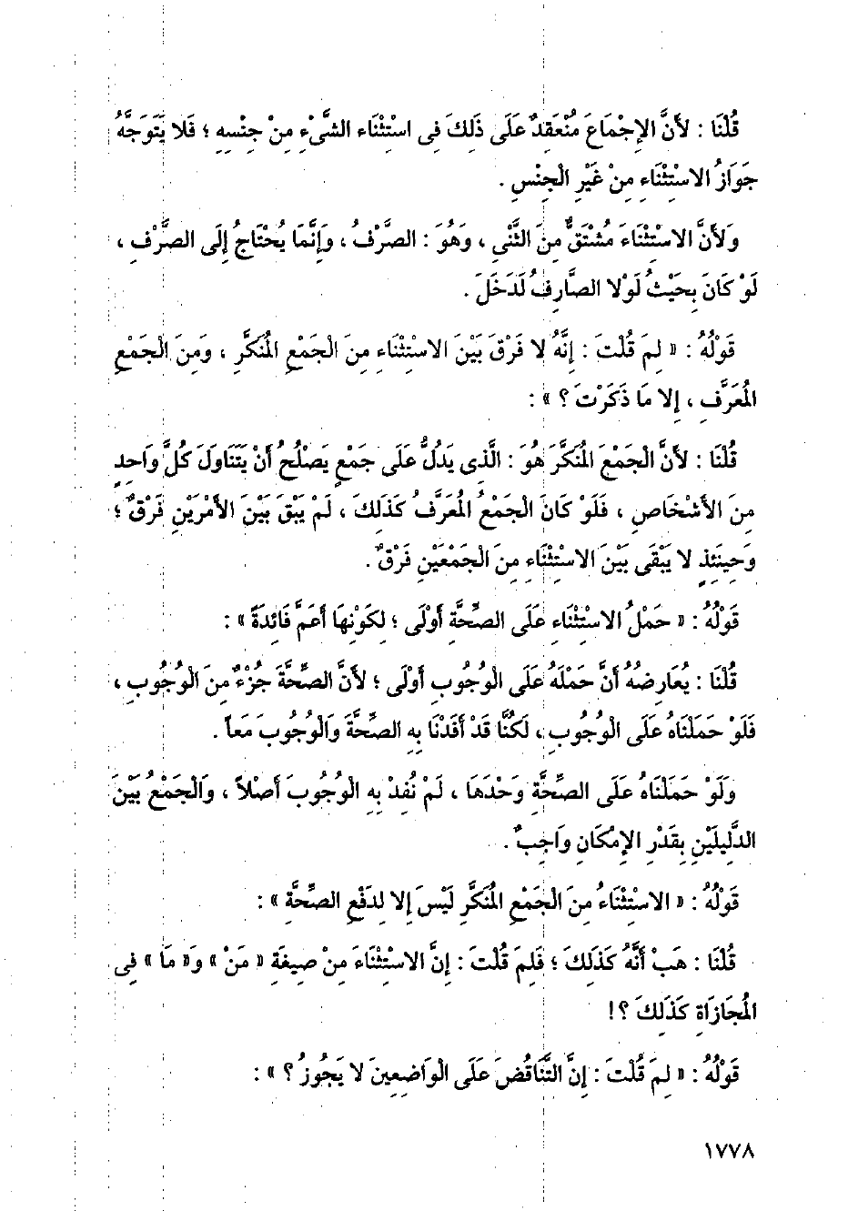 قوله: " الاستثناء من الجمع المنكر ليس إلا لدفع الصحة ".