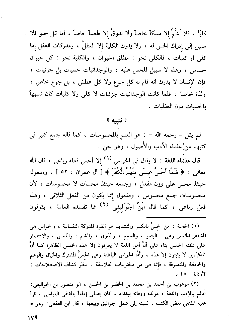 قال علماء اللغىة: لا يقال في الحواس إلا أحس فعله رباعى، قال الله تعالى: ((فلما أحس عيسى منهم الكفر)) آل عمران: 52 ومفعوله حينئذ محس على وزن مفعل، وجمع حينئذ محسات لا محسوسات، لأن محسوسات جمع محسوس، ومفعول إنما يكون من الفعل الثلاثى، وهذا فعل رباعى، كما قال ابن الجواليقي مما تفسده العامة، يقولون