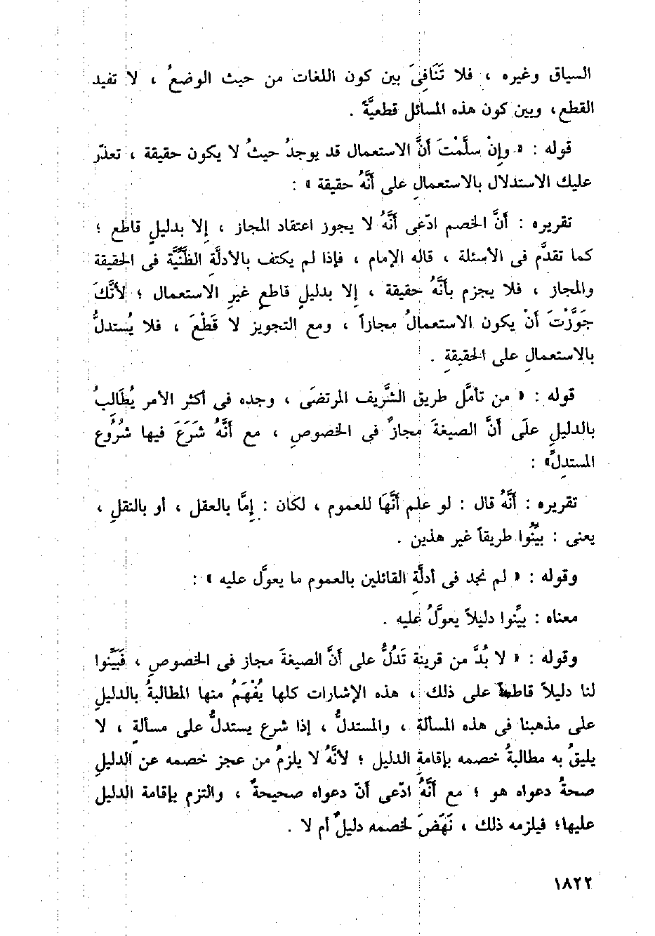 قوله: " من تأمل طريق الشريف المرتضى، وجده في أكثر الأمر يطالب بالدليل على أن الصيغة مجاز في الخصوص، مع أنه شرع فيها شروع المستدل ".