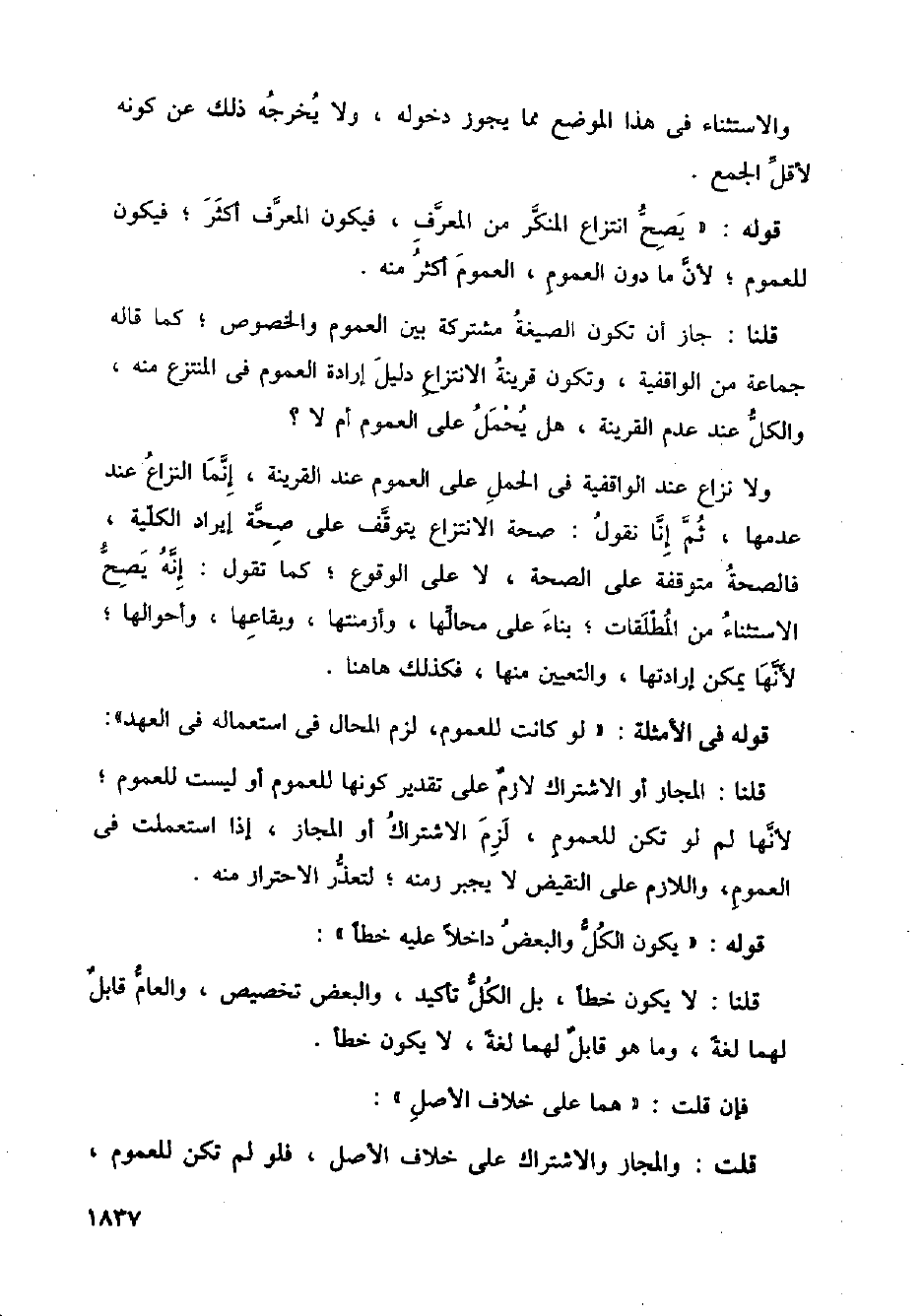 قلنا: المجاز أو الاشتراك لازم على تقدير كونها للعموم أو ليست للعموم؛ لأنها لم لو تكن للعموم، لزم الاشتراك أو المجاز، إذا استعملت في العموم، واللازم على النقيض لا يجبر زمنه؛ لتعذر الاحتراز منه.