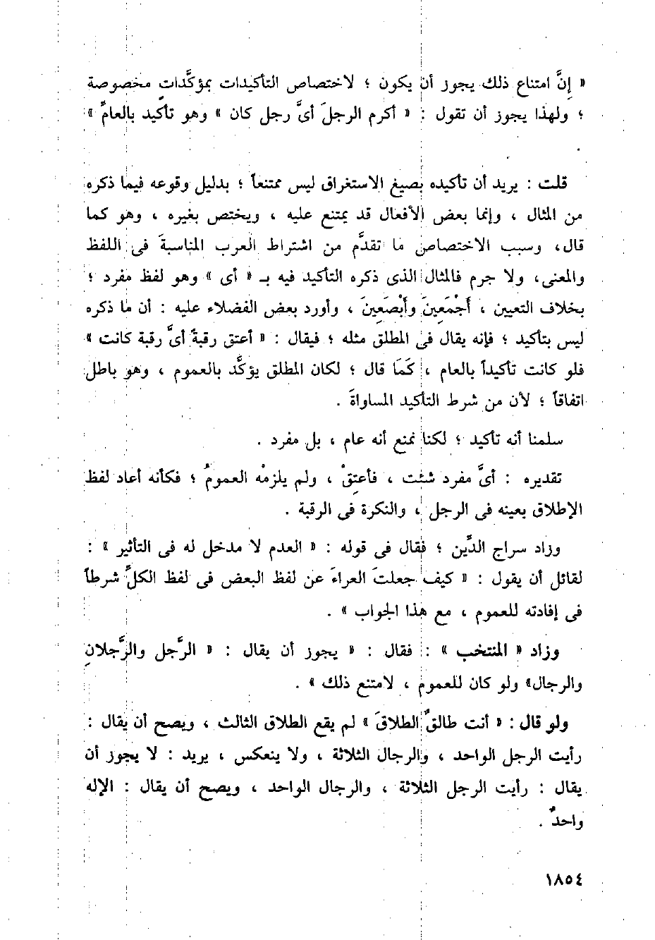 ولو قال: " أنت طالق الطلاق " لم يقع الطلاق الثالث، ويصح أن يقال: رأيت الرجل الواحد، والرجال الثالثة، ولا ينعكس، يريد: لا يجوزك أن يقال: رأيت الرجل الثلاثة، والرجال الواحد، ويصح أن يقال: الإله واحد.