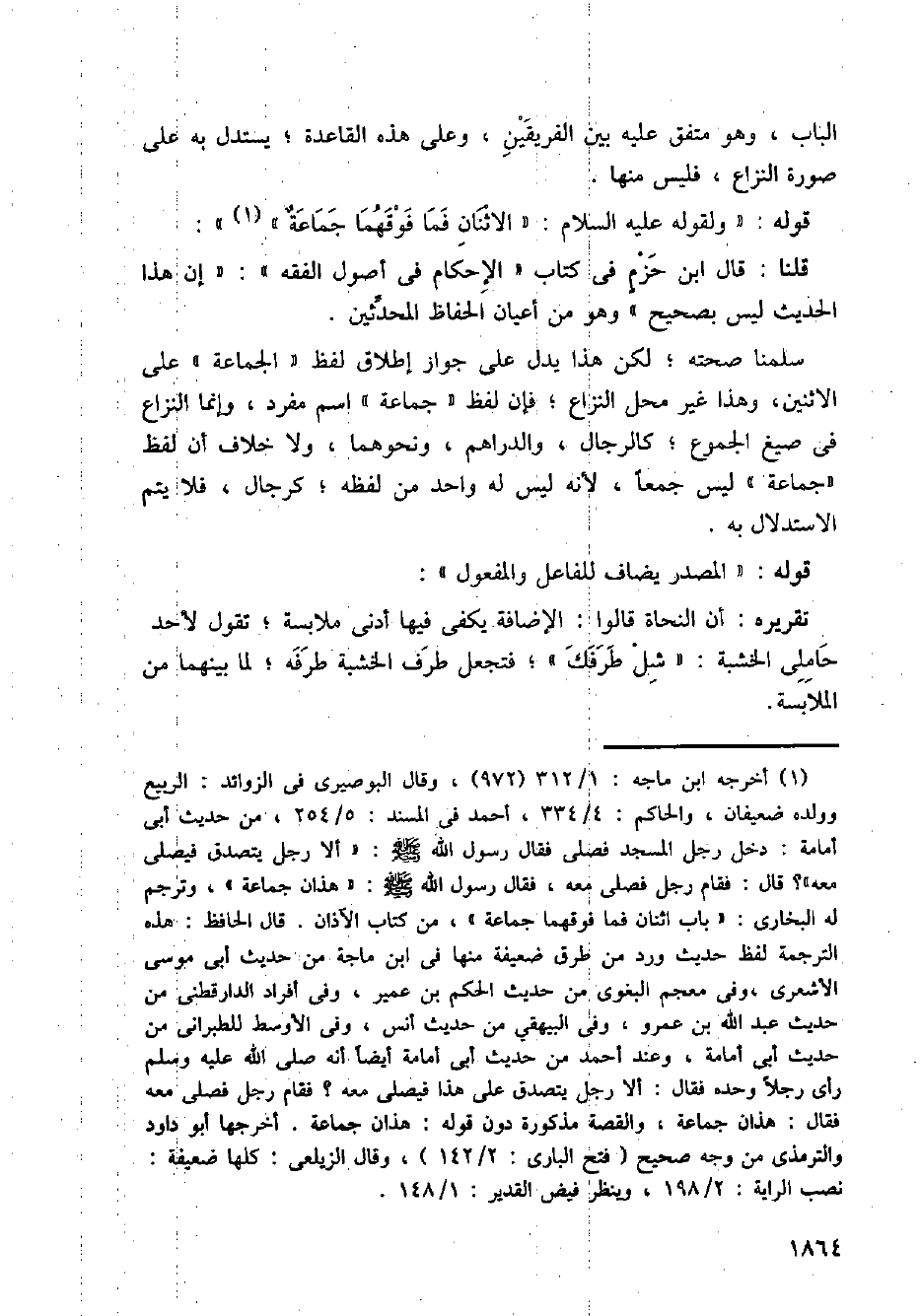 سلمنا صحته؛ لكن هذا يدل على جواز إطلاق لفظ (الجماعة) على الاثنين، وهذا غير محل النزاع؛ فإن لفظ (جماعة) اسم مفرد، وإنما النزاع في صيغ الجموع؛ كالرجال، والدراهم، ونحوهما، ولا خلاف أن لفظ (جماعة) ليس جمعا، لأنه ليس له واحد من لفظه؛ كرجال، فلا يتم الاستدلال به.