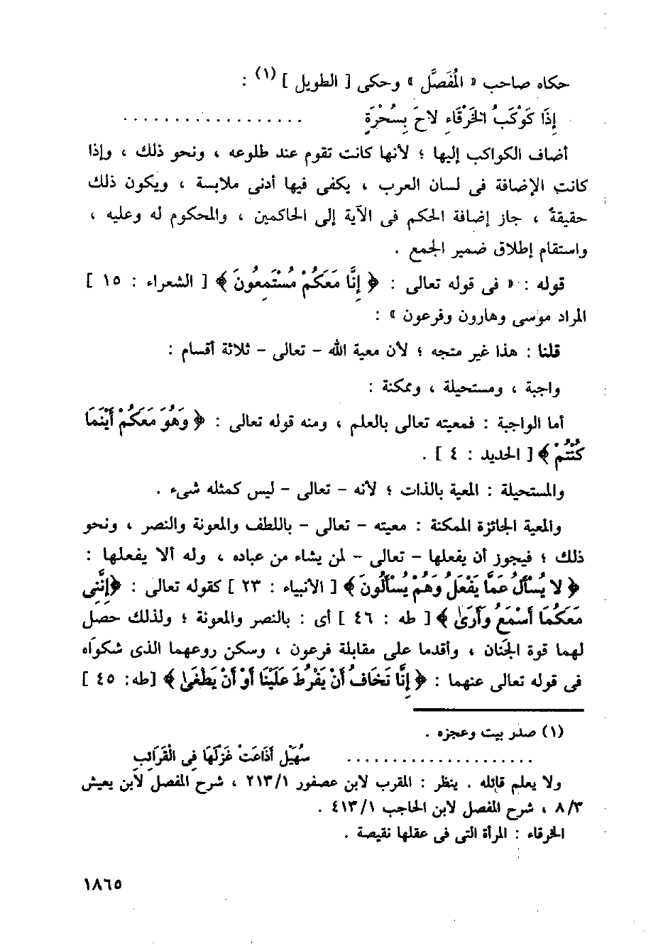 والمعية الجائزة الممكنة: معيته تعالى باللطف والمعونة والنصر، ونحو ذلك؛ فيجوز أن يفعلها تعالى لمن يشاء من عباده، وله ألا يفعلها: {لا يسأل عما يفعل وهم يسألون} [الأنبياء: 23] كقوله تعالى: {إنني معكما أسمع وأرى} [طه: 46] أي: بالنصر والمعونة؛ ولذلك حصل لهما قوة الجنان، وأقدما على مقابلة فرعون، وسكن روعهما الذي شكواه في قوله تعالى عنهما: {إنا نخاف أن يفركط علينا أو أن يطغى} [طه: 45]