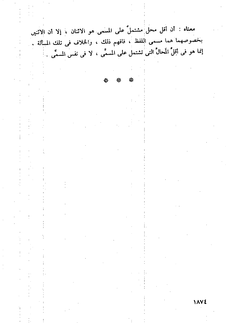 معناه: أن أقل محل مشتمل على المسمى هو الاثنان، إلا أن الاثنين بخصوصهما هما مسمى اللفظ، فافهم ذلك، والخلاف في تلك المسألة، إنما هو في أقل المحال التي تشتمل على المسمى، لا في نفس المسمى.