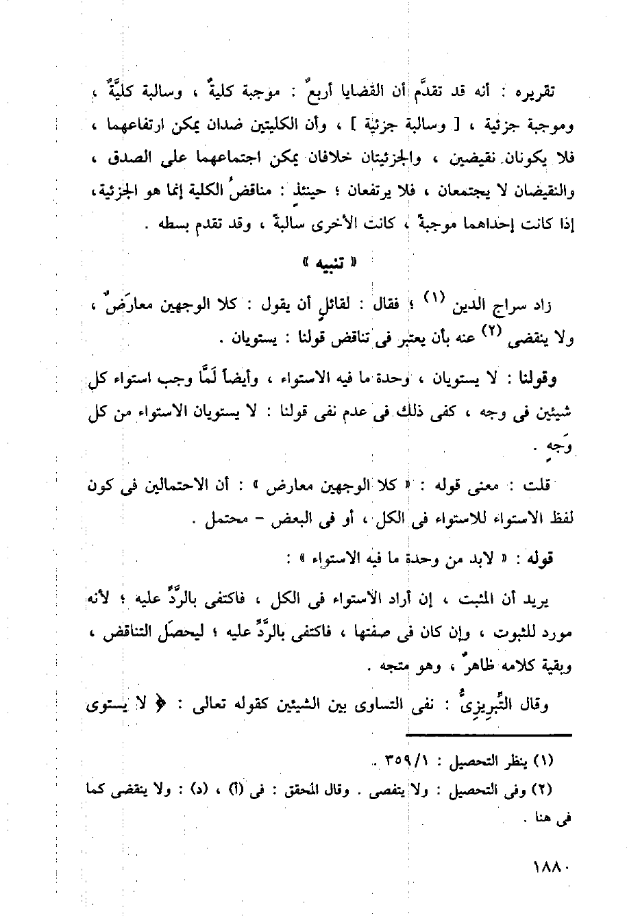 زاد سراج الدين؛ فقال: لقائل أن يقول: كلا الوجهين معارض، ولا ينقضي عنه بأن يعتبر في تناقض قولنا: يستويان.